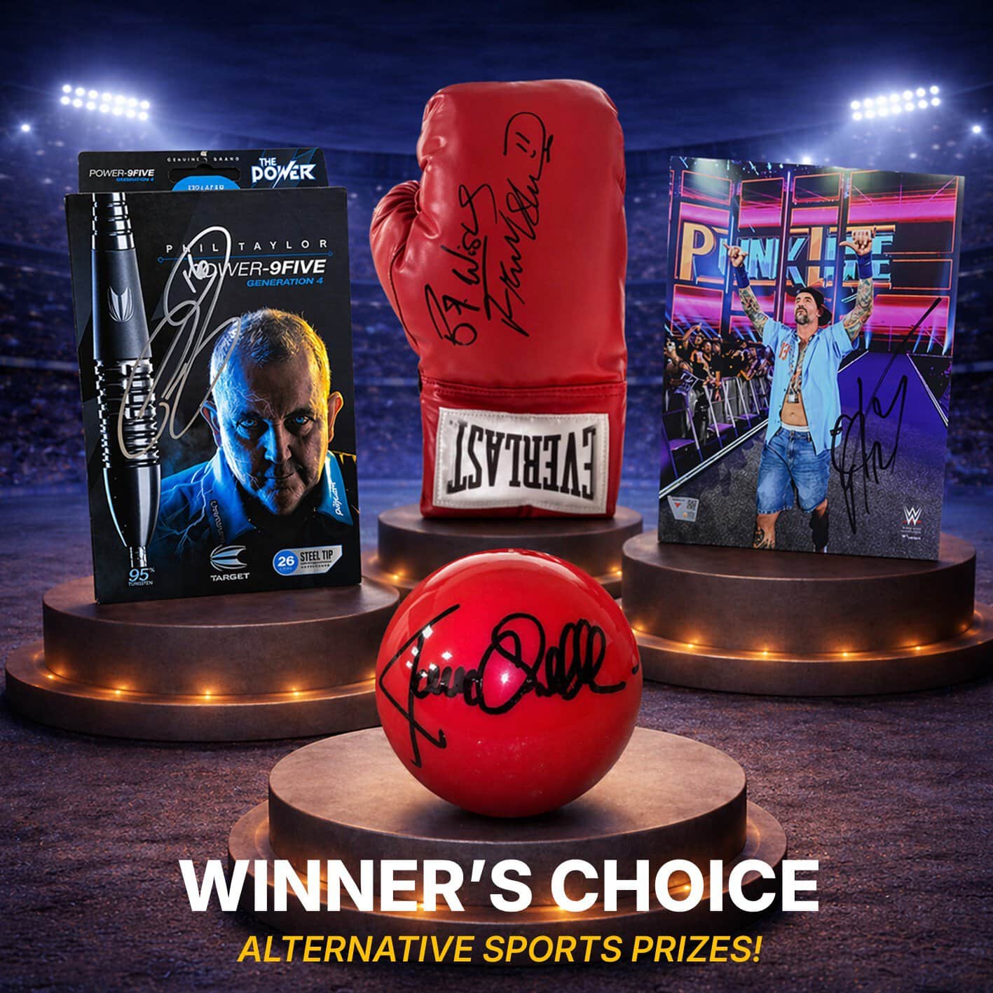Great prizes won already, from an England record breakers signed and framed shirt to my local teams record premier league goal scorers shirt also signed and framed. Arrived within a week of winning the prize.
