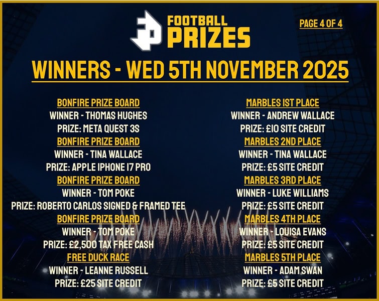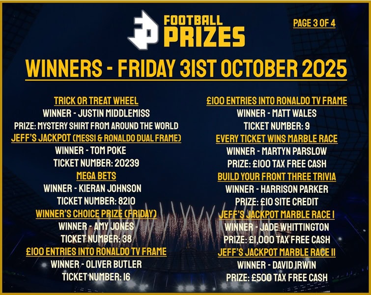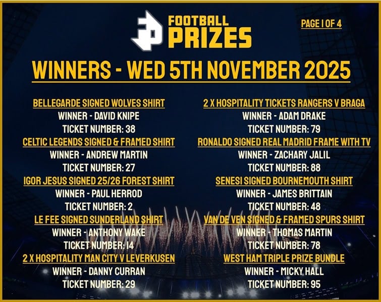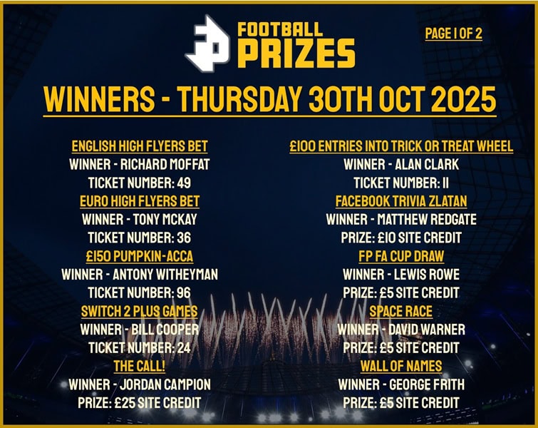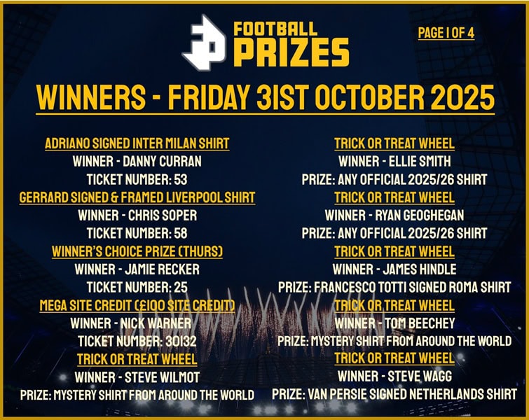 CLICK HERE TO WATCH THE DRAW BACK FRIDAY 24TH OCTOBER 2025 AT 12PM