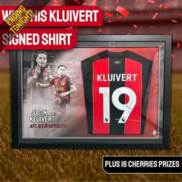 Bournemouth Mega Competition! Win this Justin Kluivert Signed & Custom Framed Shirt Display (Plus 16 Bournemouth Instant Wins!)