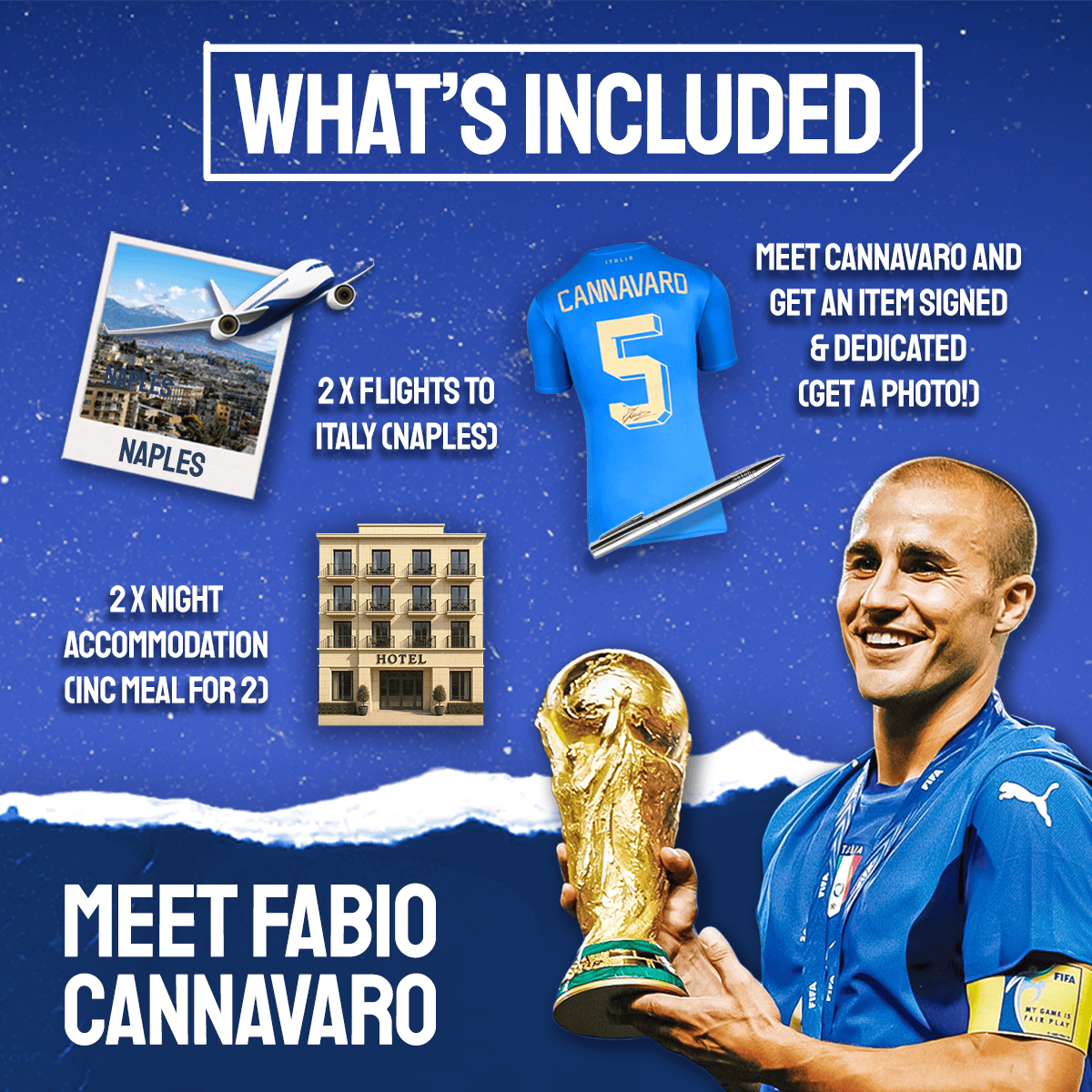 For just £2.95, the winner of this competition will receive the ultimate football fan's dream vacation, jetting out to Naples to meet Italy's iconic World Cup winning captain!