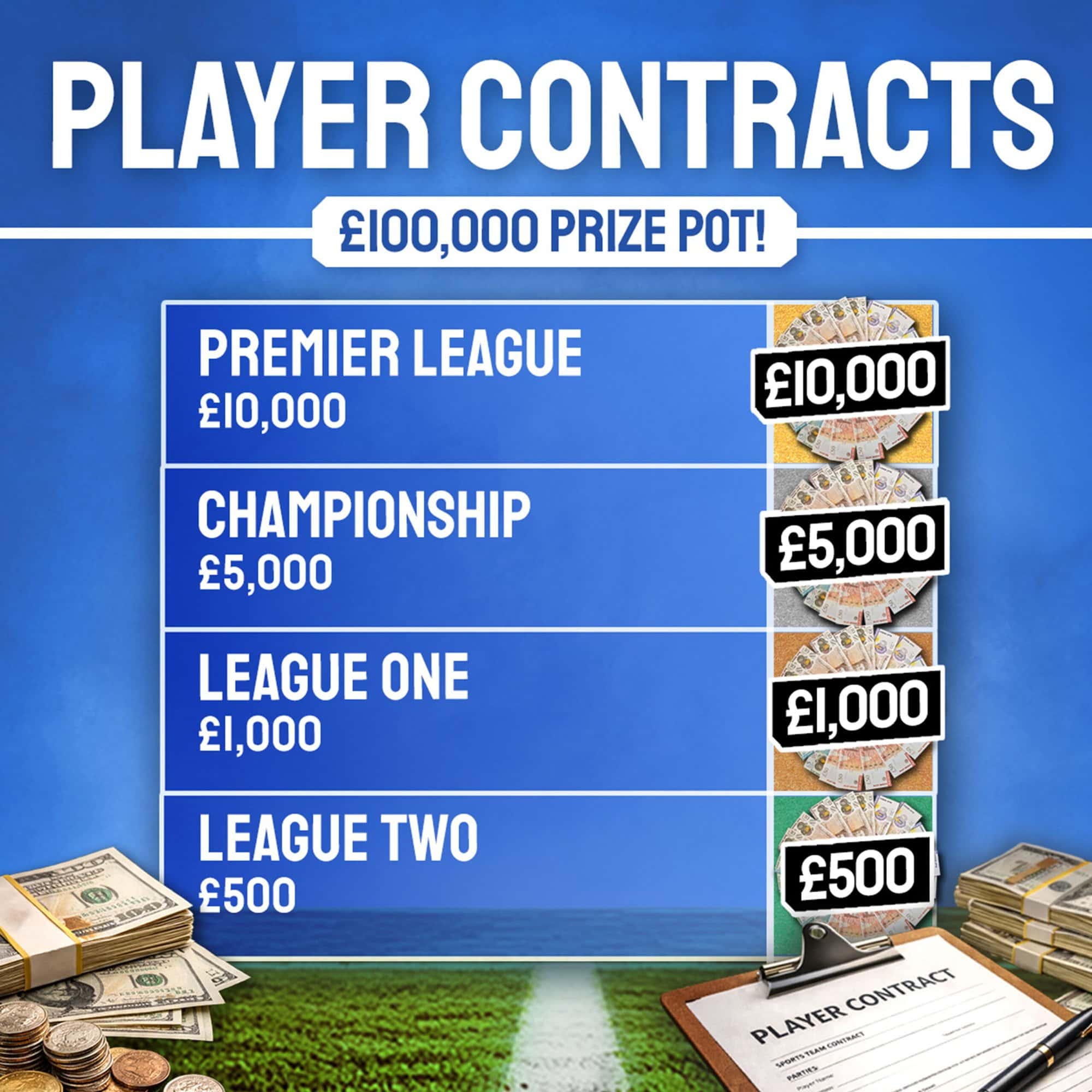 The prizes follow the journey of a professional footballer’s career. From your first opportunity to impress, right through to the top tier of the game, here’s what your ticket could unlock: