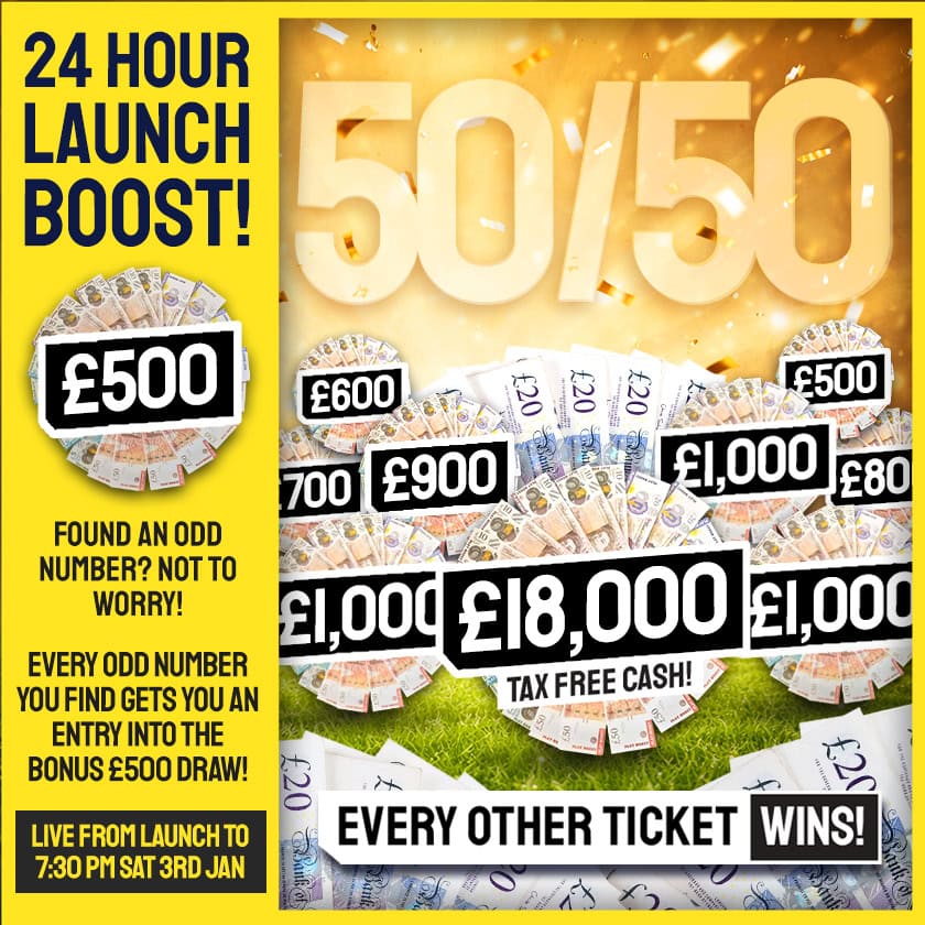 50/50! Every Other Ticket Wins in this HUGE £18,000 Cash Competition!