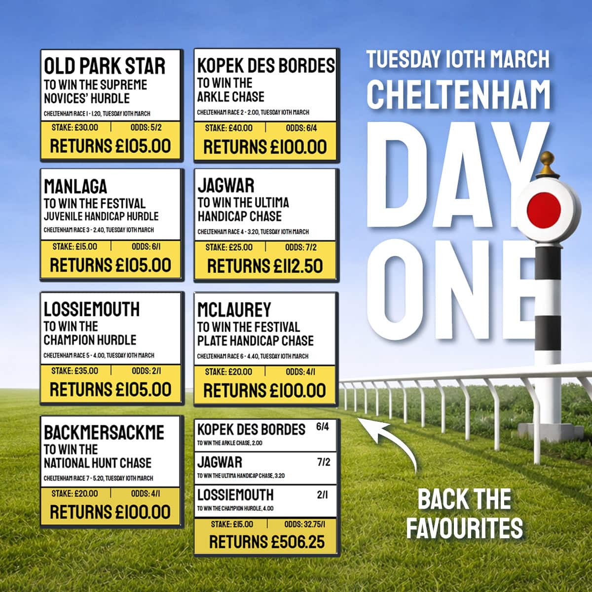 Back the Favourites in all SEVEN Races!