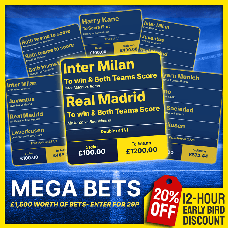 Mega Bets! Win a Share of £1500 Bets for the Weekend's Football!